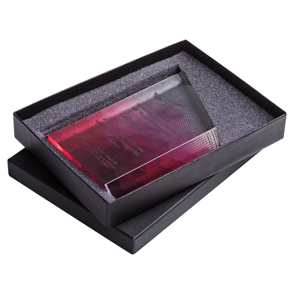 При печати стоит использовать антистатик для акрила. Не рекомендуем протирать награды спиртом перед нанесением: акрил будет трескаться. В зависимости от желаемого эффекта, фон может быть напечатан с подложкой или без подложки.