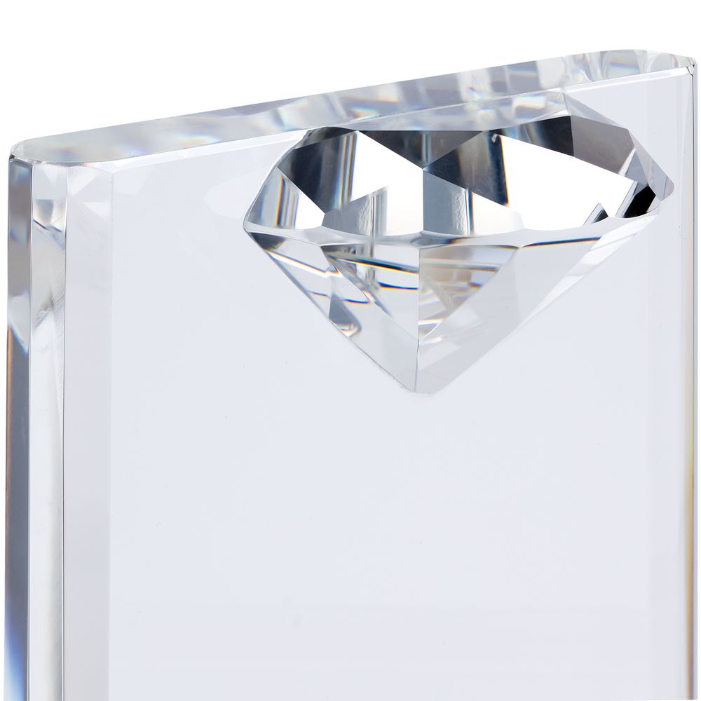 Стела изготовлена из стекла К9, в основе которого лежит оптическое боросиликатное стекло. Эту марку стекла отличает низкий процент посторонних включений, высокий показатель преломления и высокая прозрачность — идеальные качества для изготовления наград премиального уровня.