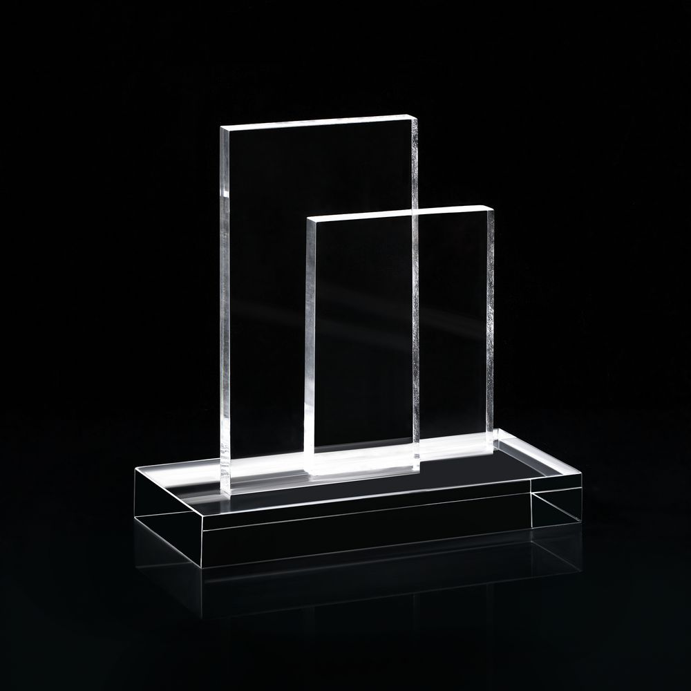 Элегантные линии и прозрачный материал придают стеле Doublet эстетическую привлекательность, позволяя ей гармонично сочетаться с любым интерьером — от офисов до выставочных залов. Акрил (оргстекло) отличается прочностью и легкостью, что обеспечивает долговечность и устойчивость к повреждениям. Благодаря двухуровневой конструкции стела станет прекрасным холстом для идей и творчества и позволит создать уникальную награду со множеством элементов дизайна.