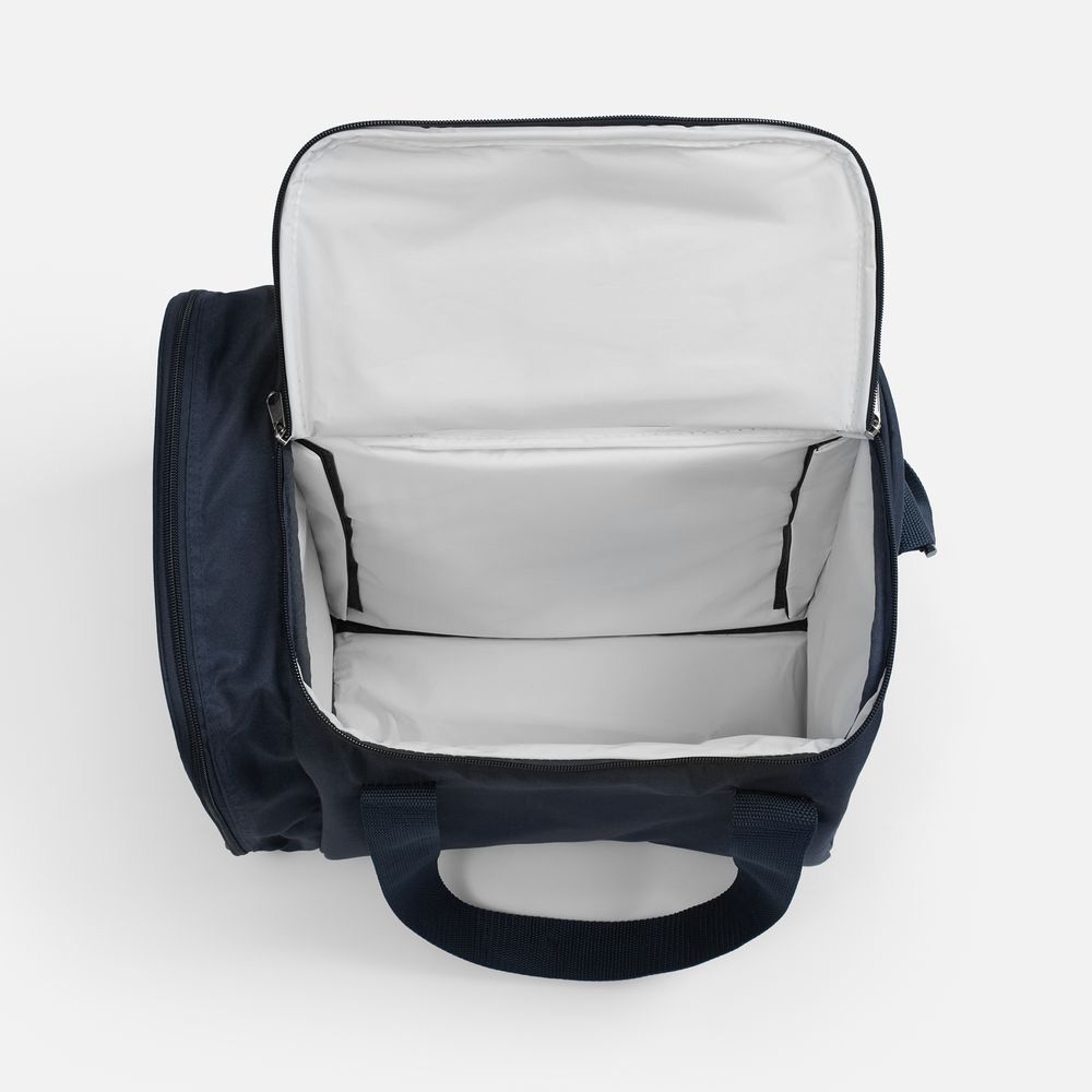 Вместительная термосумка в классическом сдержанном стиле позволит до прибытия на место сохранить напитки холодными, а салаты и закуски —свежими.