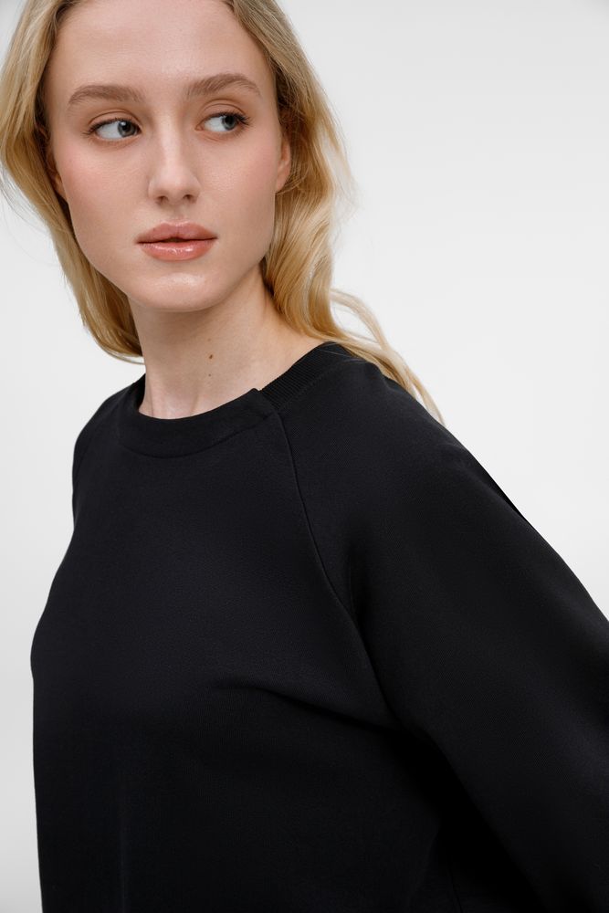 - Горловина по рукаву — реглан выполнена резинкой 2х2, а спереди и сзади — из основного полотна