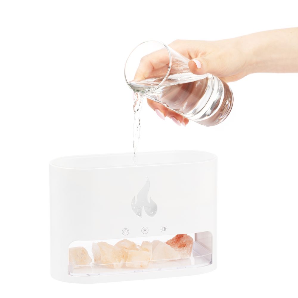 Отличительная черта модели Fusion Blaze — подсветка в виде разноцветного пламени, оттенок которого можно менять на свое усмотрение, а также кристаллы декоративной гималайской соли, размещенные на специальной площадке. Соль ионизирует воздух, делая его немного похожим на морской.