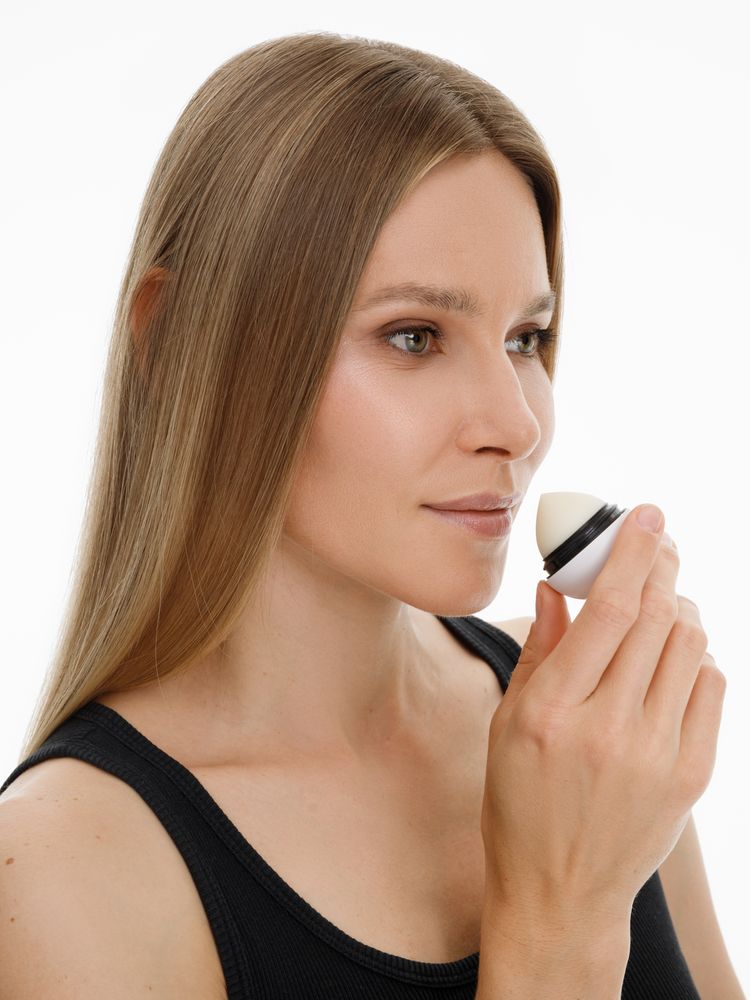 Состав: масло ши, масло кокоса, масло сладкого миндаля, воск пчелиный отбеленный, воск соевый, воск канделильский, масло оливковое, пищевой ароматизатор «кокос-сливки», смесь токоферолов, пигмент лучистый белый, *витамин A, *витамин B1, *витамин B2, *витамин B3, *витамин B5, *витамин C, *витамин D, *витамин E. *Естественные вещества, входящие в состав масел.