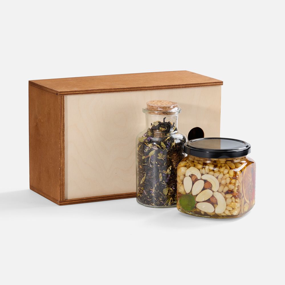 Этот набор станет прекрасным выбором как для бодрого утра, так и для спокойного вечера. Все компоненты представлены в деревянном ящике, что делает набор изысканным подарком для ценителей натуральных вкусов и материалов.