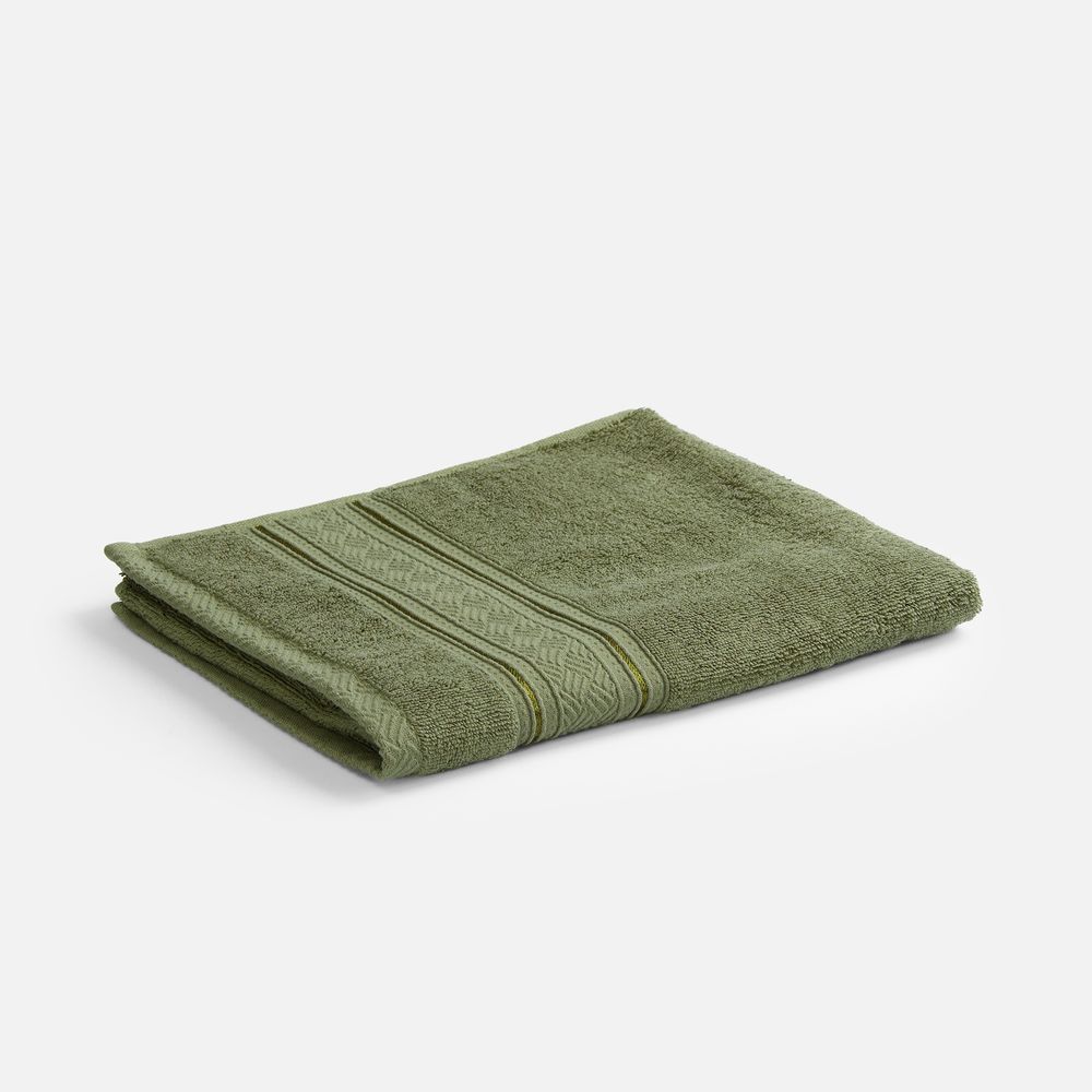 Темные приглушенные оттенки и полоса с орнаментом в классическом стиле делают это полотенце элегантным и функциональным аксессуаром в ванной комнате.