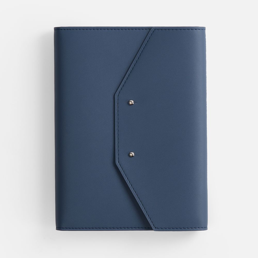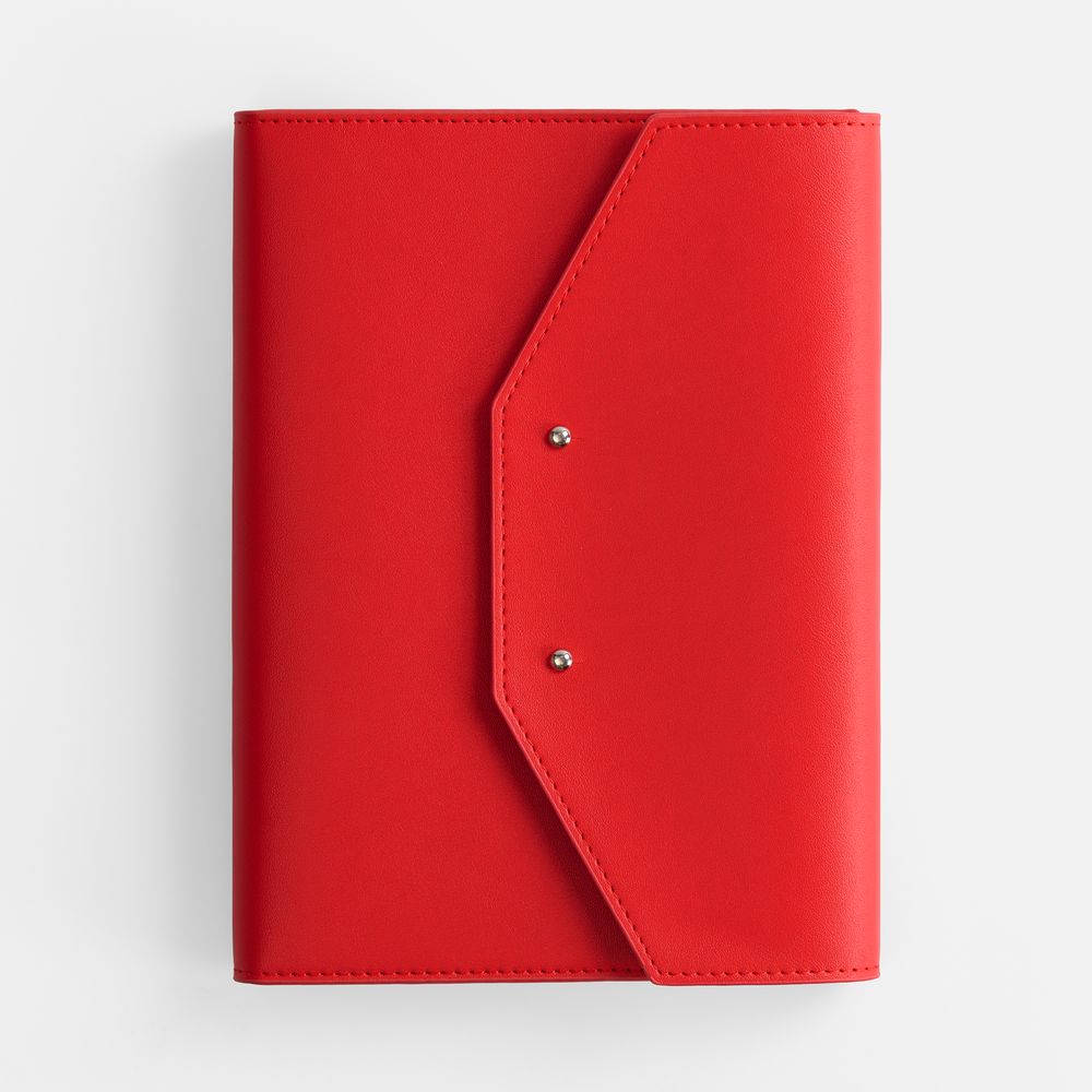 Ежедневник-органайзер в мягком переплете, формат А5+, с карманами для визиток и документов, петлей для ручки. Дополнен ляссе и капталом в цвет обложки. Клапан с прорезями застегивается на кобурные металлические кнопки.