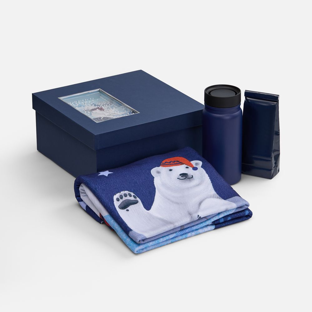 Подарочный набор, который так и шепчет: «сказка близко». Уютнейший плед с красочным изображением белых мишек, надежный стильный термостакан и необычный чай с насыщенным черничным ароматом — идеальная компания для умиротворяющего домашнего отдыха в сезон новогодней суеты или после главных зимних развлечений. Это теплое объятие и искренняя забота — то, что нужно в праздники, когда так хочется поверить в чудеса.