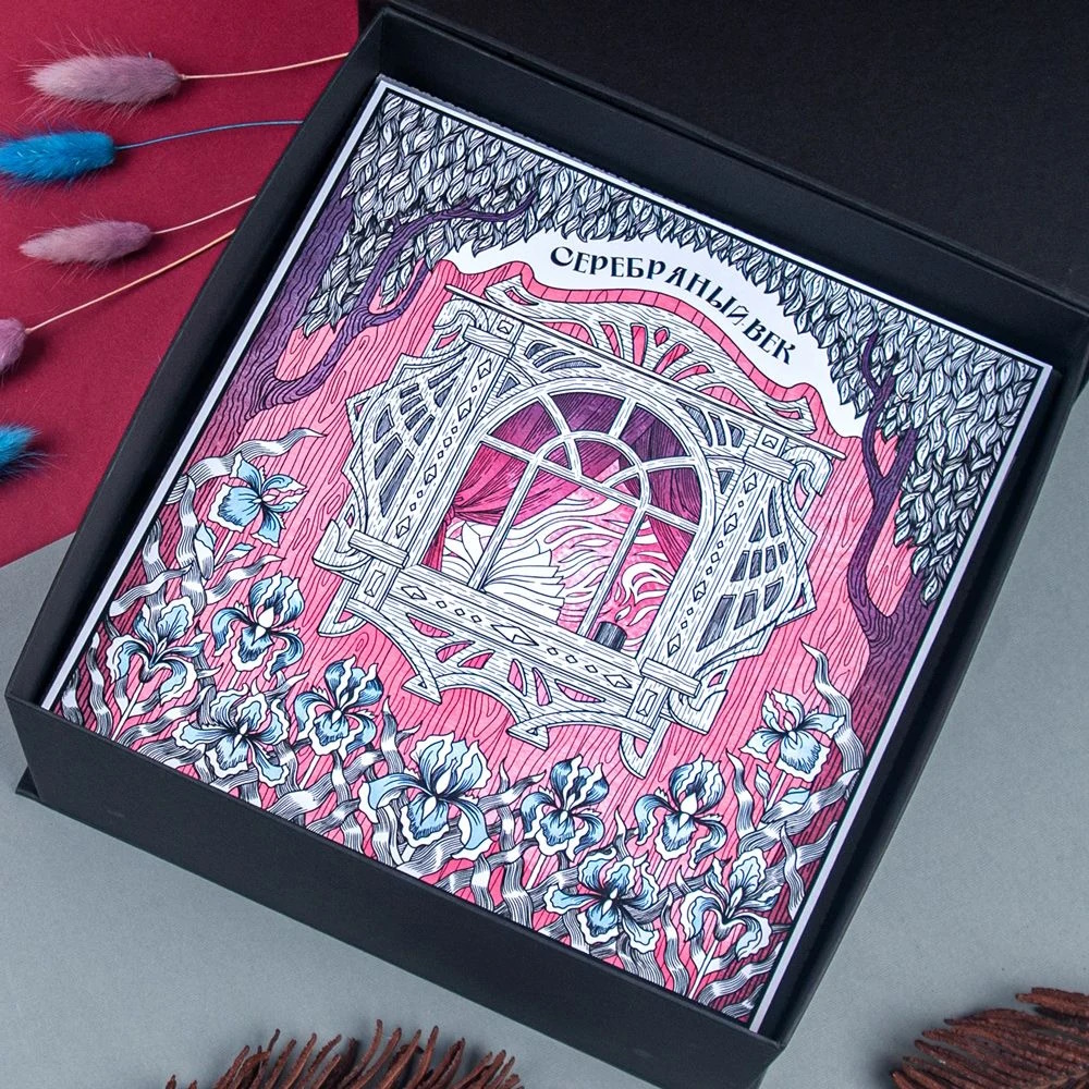 Подарок «Серебряный век» — это эстетическое путешествие в эпоху утончённости, вдохновения и духовного пробуждения русской культуры. В наборе представлена книга с поэзией серебряного века. Легенда с новым знанием рассказывает о том, почему этот период имеет большую ценность для нашей культуры и какие важные события происходили в то время. Дизайн выполнен с использованием иллюстраций в стиле модерн и «Мирискусников», которые подняли русскую графику до уровня самостоятельного вида искусства. Открытка выполнена с отсылкой к национальным мифологическим темам, которые были тогда очень популярны, что также описано в легенде, а также к природным мотивам, часто встречающимся в орнаментике и архитектуре того времени.