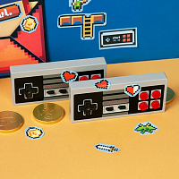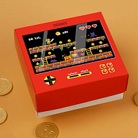Вы сможете окунуться в игры денди на большом экране... Марио, Танчики или Контра? Также вам предстоит собрать все шоколадные монетки и повесить гирлянду из сердечек-жизней.